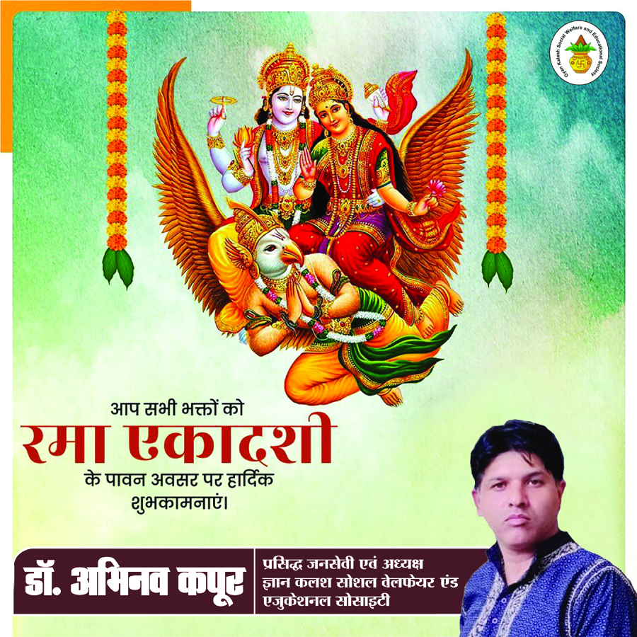 समस्त देशवासियों को ‘रमा एकादशी’ की हार्दिक बधाई एवं शुभकामनाएं : डॉ. अभिनव कपूर
