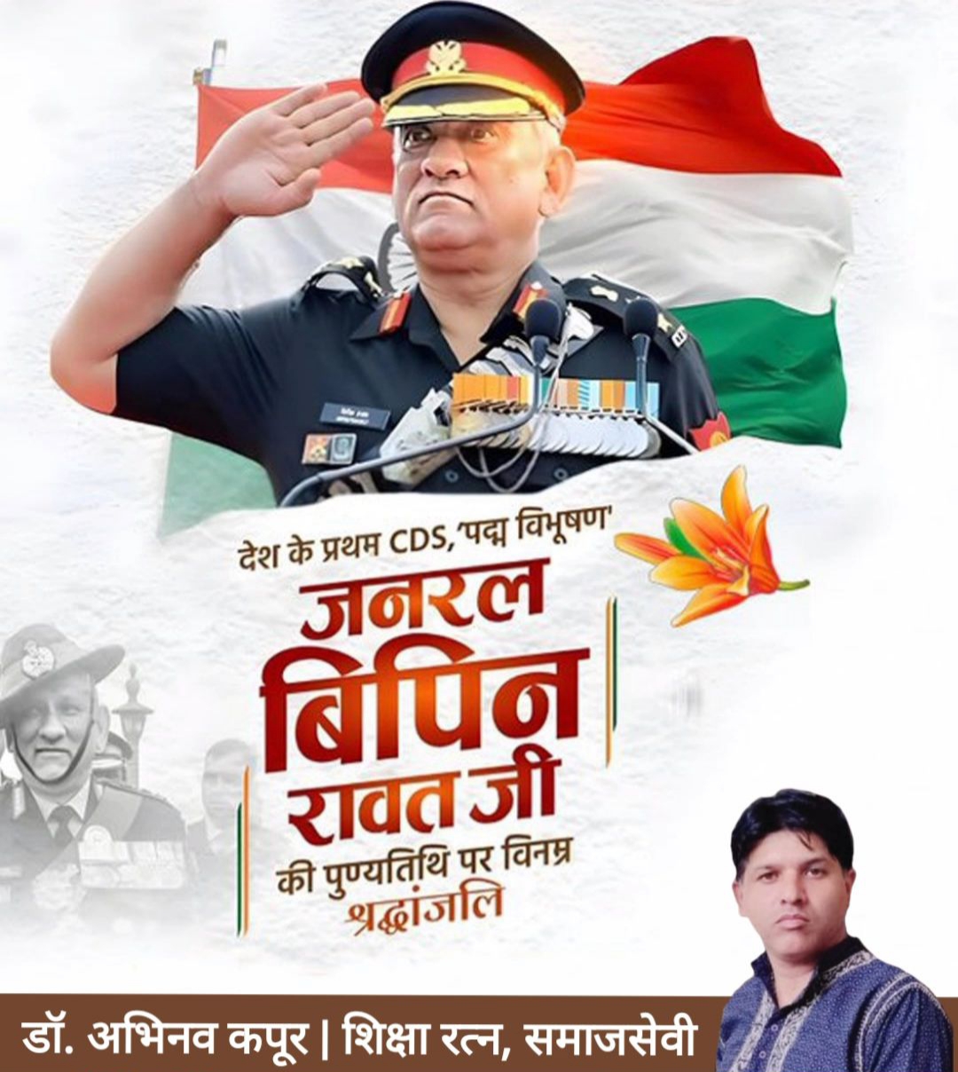 जनरल बिपिन रावत की पुण्यतिथि पर उन्हें शत्-शत् नमन : डॉ. अभिनव कपूर