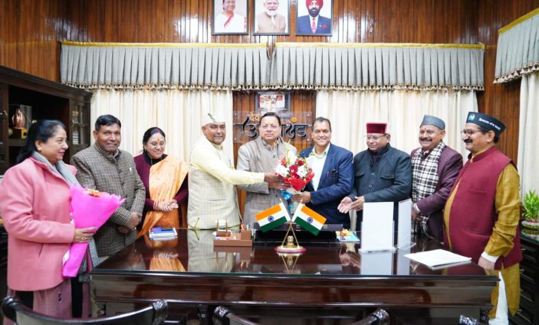 देहरादून। उत्तराखंड के मुख्यमंत्री  पुष्कर सिंह धामी से मुख्यमंत्री कैंप कार्यालय में पूर्व कैबिनेट मंत्री प्रेमचंद्र अग्रवाल, विधायक खजान दास, किशोर उपाध्याय, सहदेव पुंडीर, आशा नौटियाल, रेनू बिष्ट, बृजभूषण गैरोला, शक्तिलाल शाह ने मुलाकात की।