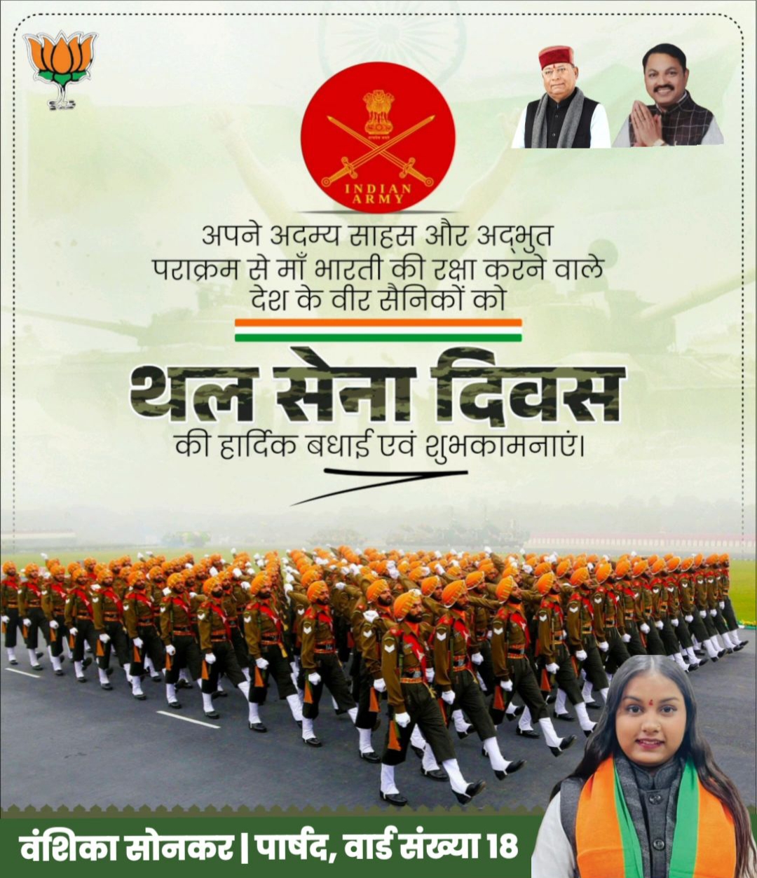 माँ भारती की रक्षा करने वाले देश के वीर सैनिकों को ‘थल सेना दिवस’ की शुभकामनाएं : वंशिका सोनकर