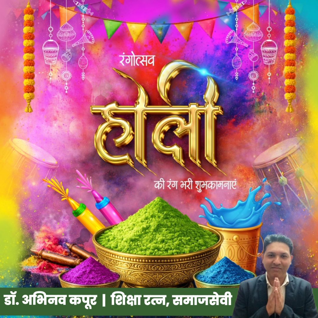 समस्त देशवासियों को होली के पावन पर्व की हार्दिक बधाई व शुभकामनाएं : डॉ. अभिनव कपूर