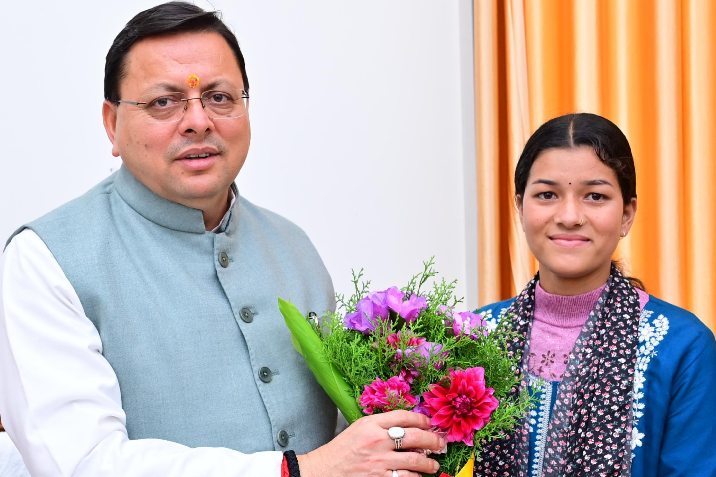 सारकोट की ग्राम प्रधान प्रियंका नेगी ने सीएम धामी से की मुलाकात