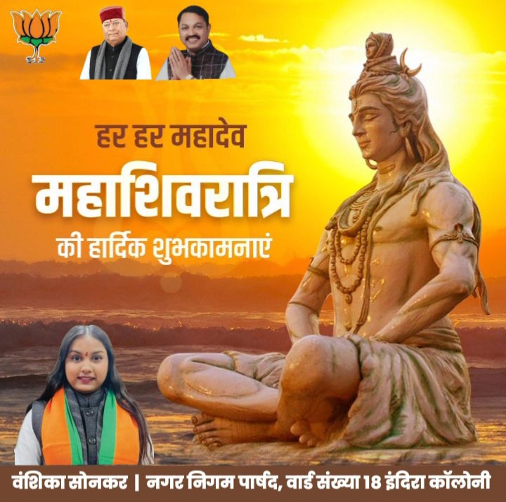 इस अवसर पर जारी अपने संदेश में पार्षद वंशिका सोनकर ने कहा- आप सभी को महाशिवरात्रि के पावन अवसर पर हार्दिक बधाई एवं शुभकामनाएं। भगवान भोले शंकर आपकी सभी मनोकामनाएं पूर्ण करें, यही प्रार्थना है।